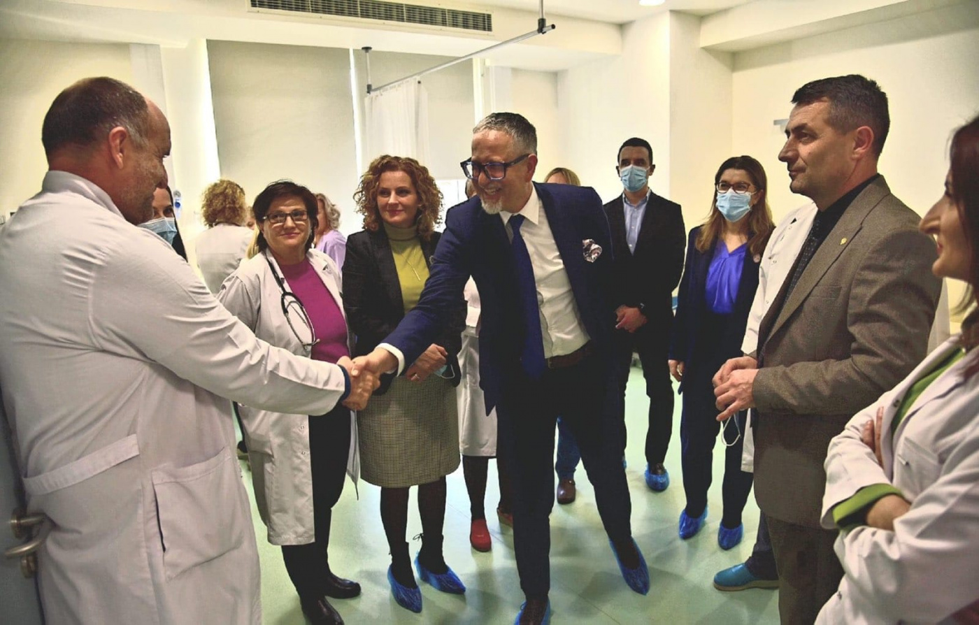 Ministri Vitia theksoi para fëmijëve të shtruar në repartin e Hemato – Onkologjisë dhe Klinikës së Kirurgjisë së Fëmijëve, angazhimin tij maksimal dhe gjithë institucioneve shëndetësore që të ketë furnizime me barna dhe kushte sa më të mira për trajtimin e tyre.