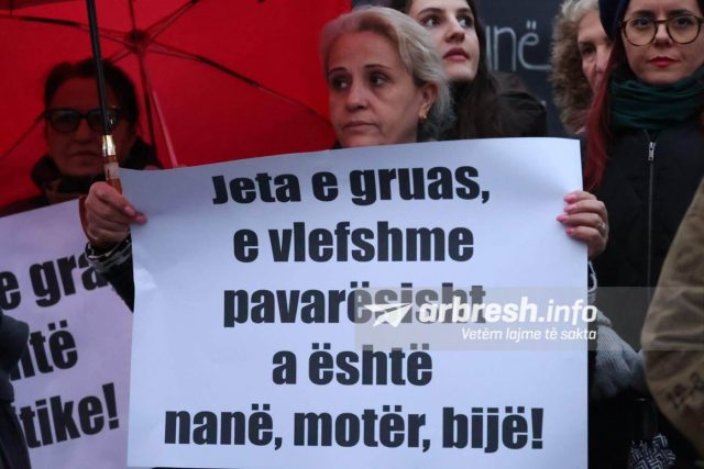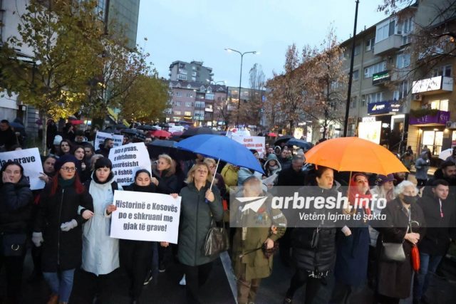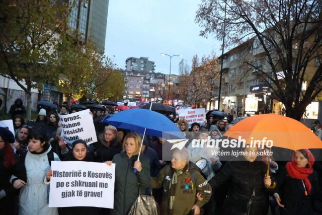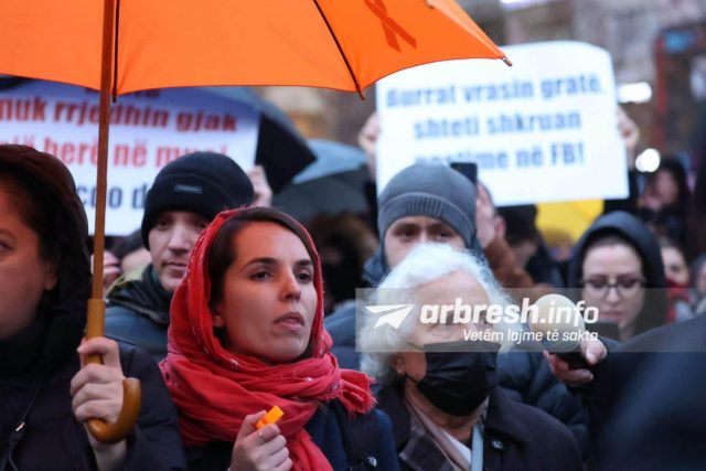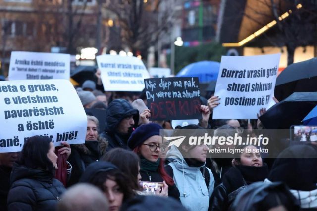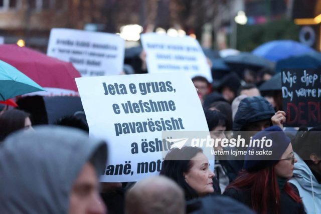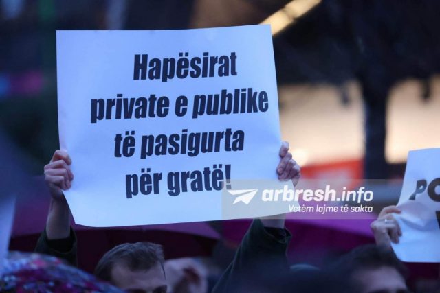 “Jeta e gruas e vlefshme pavarësisht a është nanë, motër, bijë!”, “Hapësirat private e publike të pasigurta për gratë!”, “Historinë e Kosovës po e shkruani me gjak të grave!”- janë disa nga shkrimet e pankartave të protestës. /arbresh.info/