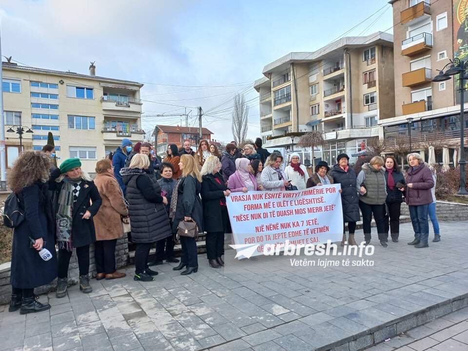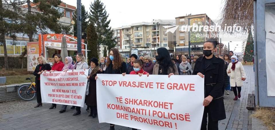 Me moton “Vrasja nuk është virtyt trimërie por forma më e ulët e ligështisë”, ato po protestojnë para Gjykatës e Stacionit të Policisë në Skenderaj.