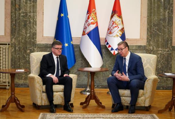 Presidenti serb, Aleksandar Vuçiq u takua sot në Beograd me përfaqësuesin special të Bashkimit Evropian për dialogun Kosovë-Serbi, Miroslav Lajçak.