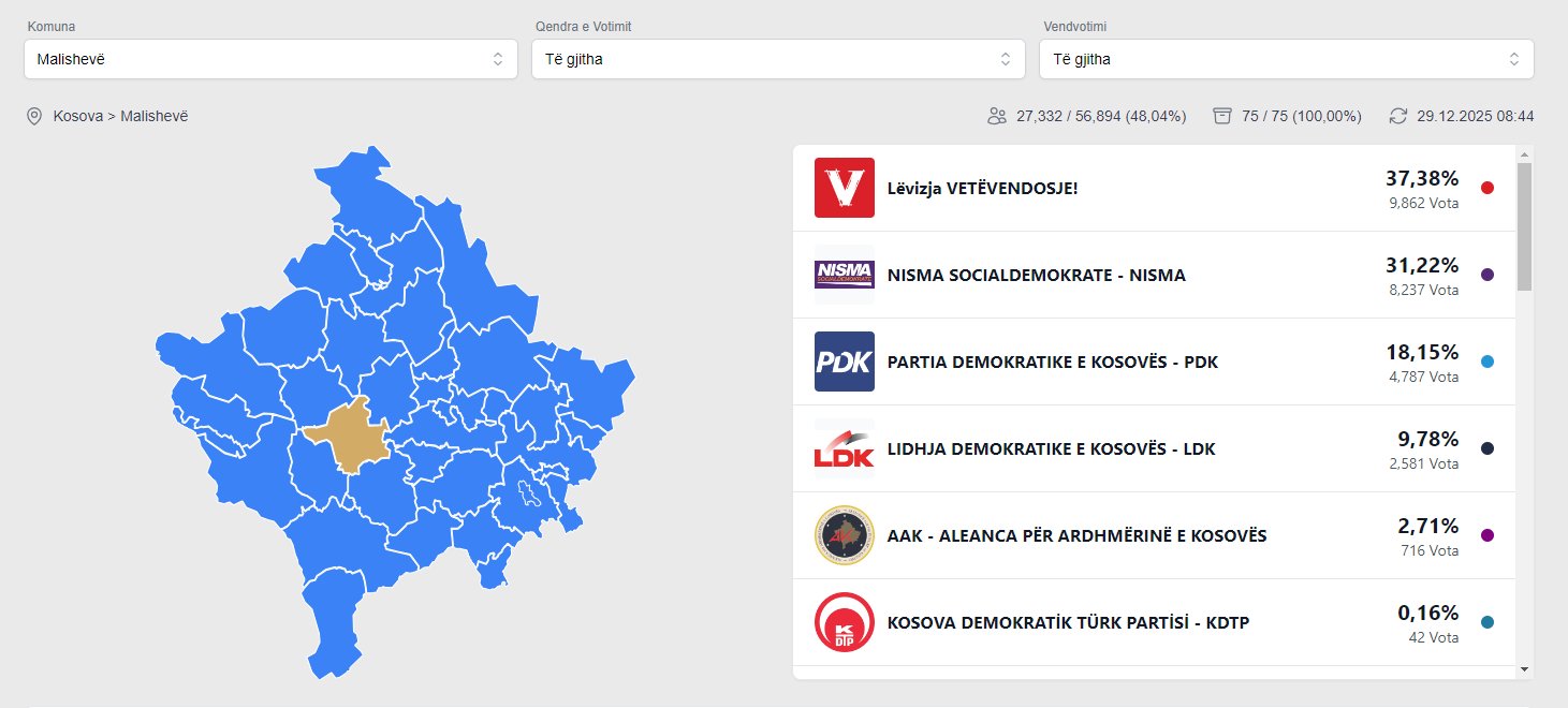 Lëvizja Vetëvendosje ka shënuar fitore të rëndësishme në komunën e Malishevës, e njohur tradicionalisht si bastion i NISMA-s.