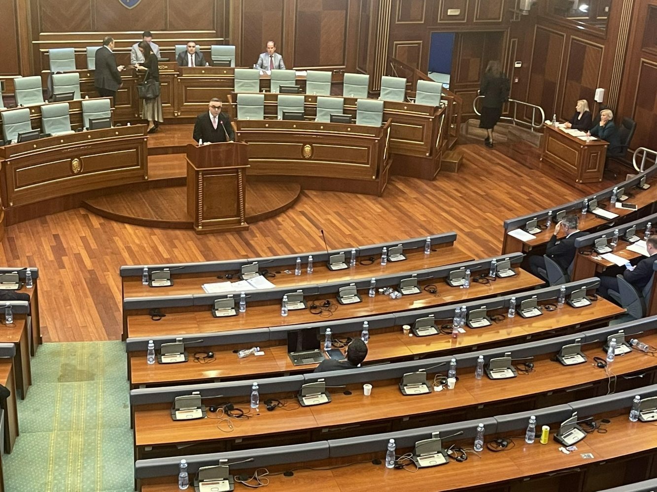 “Me gjithë respektin për kërkesën dhe insistimin e z. Tahirit për me fillu seanca e jashtëzakonshme, asnjë herë në këtë legjislaturë nuk ka qenë praktikë, ose të paktën nuk kemi arritur të fillojmë seancën në kohën kur është caktuar. Kjo seancë ka filluar me 40 minuta vonesë dhe insistojmë që të përmbyllen punimet e seancës së datës 28 shtator dhe 4 tetorit për t’u hapur punimet e seancës së jashtëzakonshme”,.