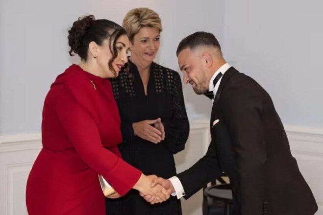 Futbollisti Xherdan Shaqiri i është bashkuar Presidentes Vjosa Osmani në darkën shtetërore në Zvicër.