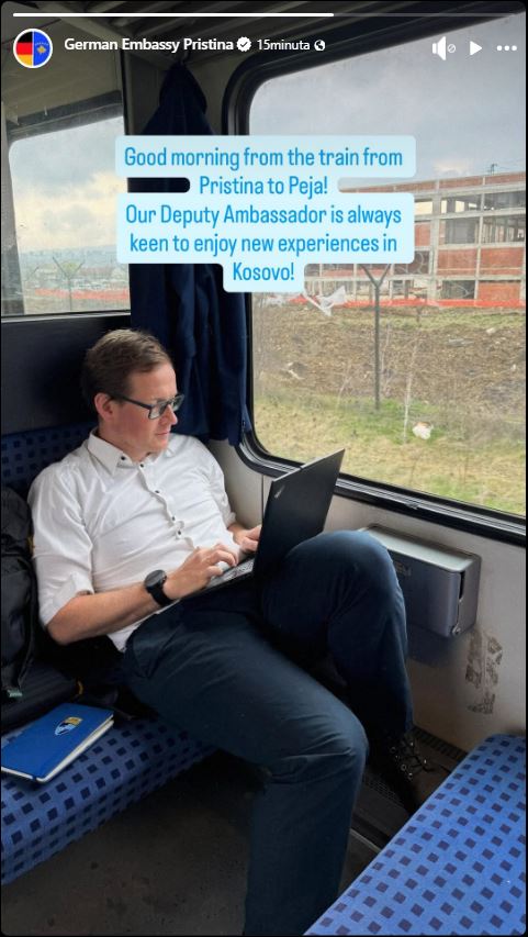 Ambasada gjermane në Kosovë ka publikuar një fotografi ku zv/ambasadori shihet i ulur në tren duke lexuar, ndërsa ka shoqëruar postimin me një mesazh pozitiv.