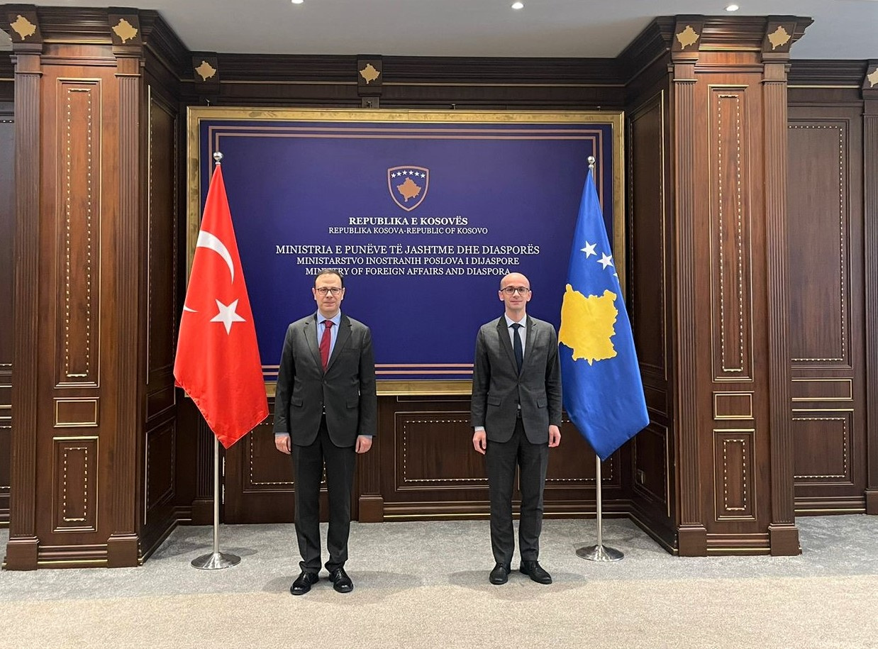 Zëvendësministri i Punëve të Jashtme dhe Diasporës, Kreshnik Ahmeti, mirëpriti në takim ambasadorin e ri të Turqisë në Republikën e Kosovës, Sabri Tunc Angili.