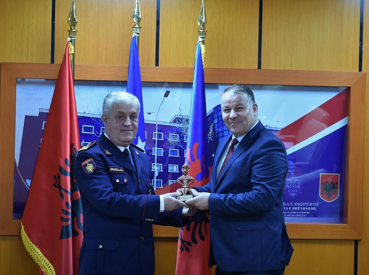 Drejtori i Përgjithshëm i Policisë së Shqipërisë Muhamet Rrumbullaku ka pritur sot në një takim miqësor, drejtorin e Përgjithshëm të Policisë së Kosovës, Gazmend Hoxhën.