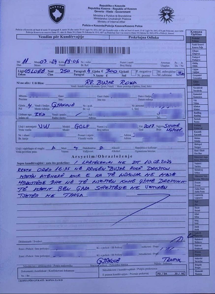 Njësia Rajonale e Komunikacionit Rrugor në Gjakovë me datën 11.03.2024 kanë identifikuar dhe ndalur katër automjete në rrugët “Adem Jashari” dhe “Bujar Roka”, ngasësit e të cilave bënin gara shpejtësie, me ç’rast kishin bërë edhe shkelje të tjera të rregullave të trafikut. Ndaj këtyre ngasësve janë ndërmarrë masa bazuar në ligjin për trafikun rrugor./Arbresh.info/
