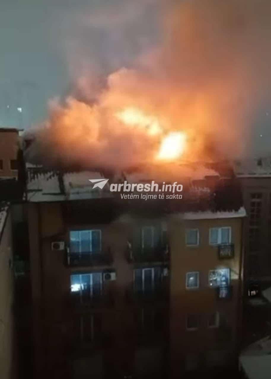 Një zjarr ka shpërthyer në pullazin e një ndërtese në Ferizaj, rreth mesnatës së së shtunës.