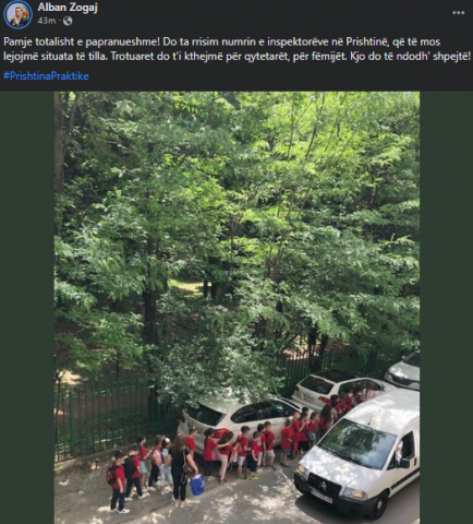 “Pamje totalisht e papranueshme! Do ta rrisim numrin e inspektorëve në Prishtinë, që të mos lejojmë situata të tilla. Trotuaret do t’i kthejmë për qytetarët, për fëmijët. Kjo do të ndodh’ shpejtë”, ka shkruar Zogaj në Facebook.