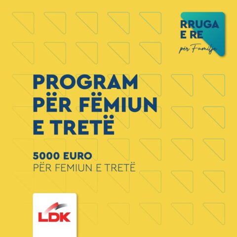Lidhja Demokratike e Kosovës (LDK), në programin e saj qeverisës për familje parasheh ndarjen e pesë mijë eurove për fëmijën e tretë.