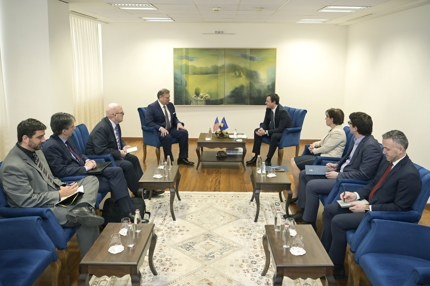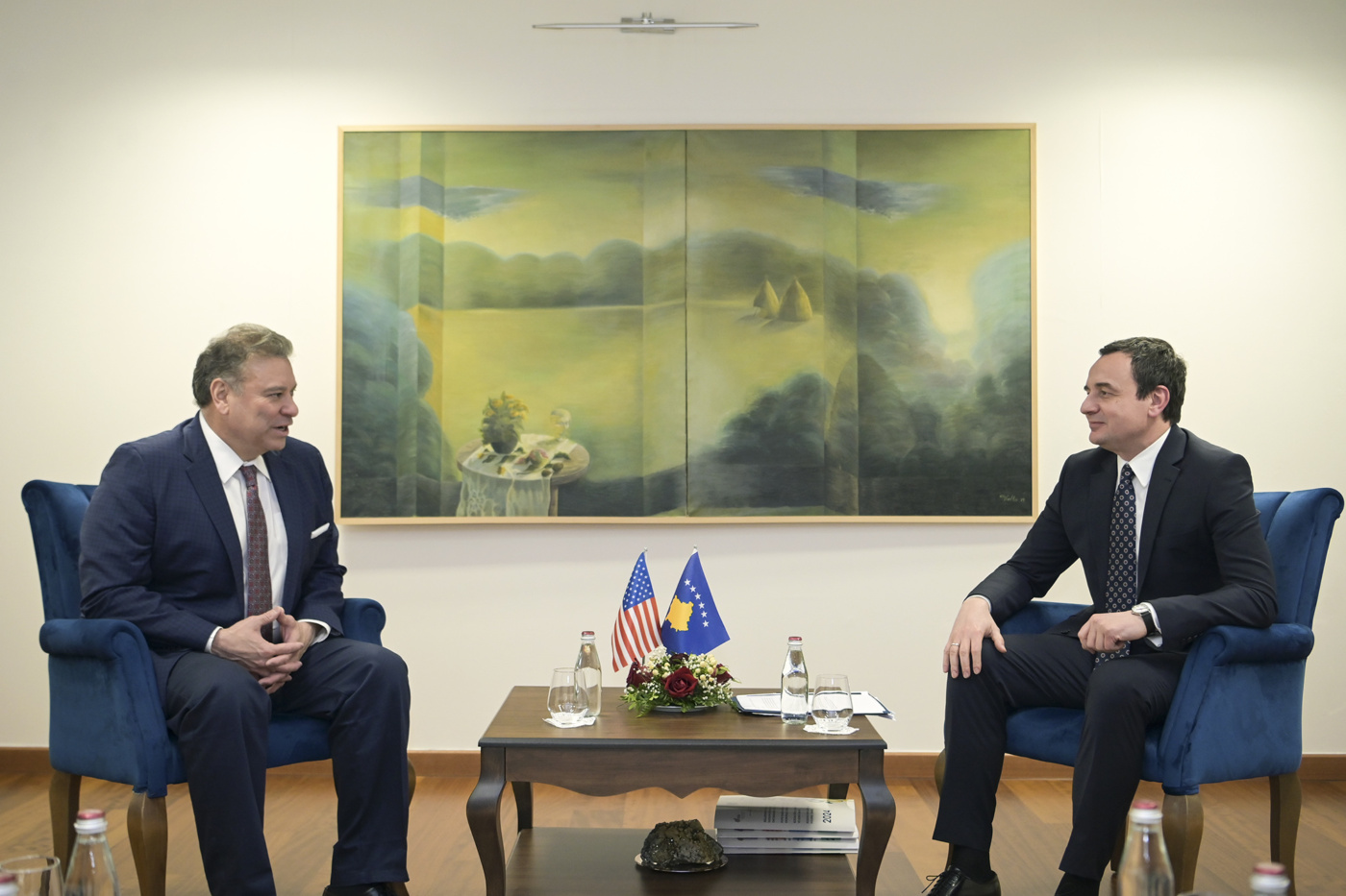 Kryeministri i Republikës së Kosovës, Albin Kurti, priti sot zëvendës Ndihmës Sekretarin e Shteteve të Bashkuara për Çështje Evropiane dhe Euroaziatike dhe njëherësh të dërguarin e posaçëm të Shteteve të Bashkuara të Amerikës për Ballkanin Perëndimor, Gabriel Escobar dhe Ambasadorin e Shteteve të Bashkuara të Amerikës, Jeffery Hovenier.