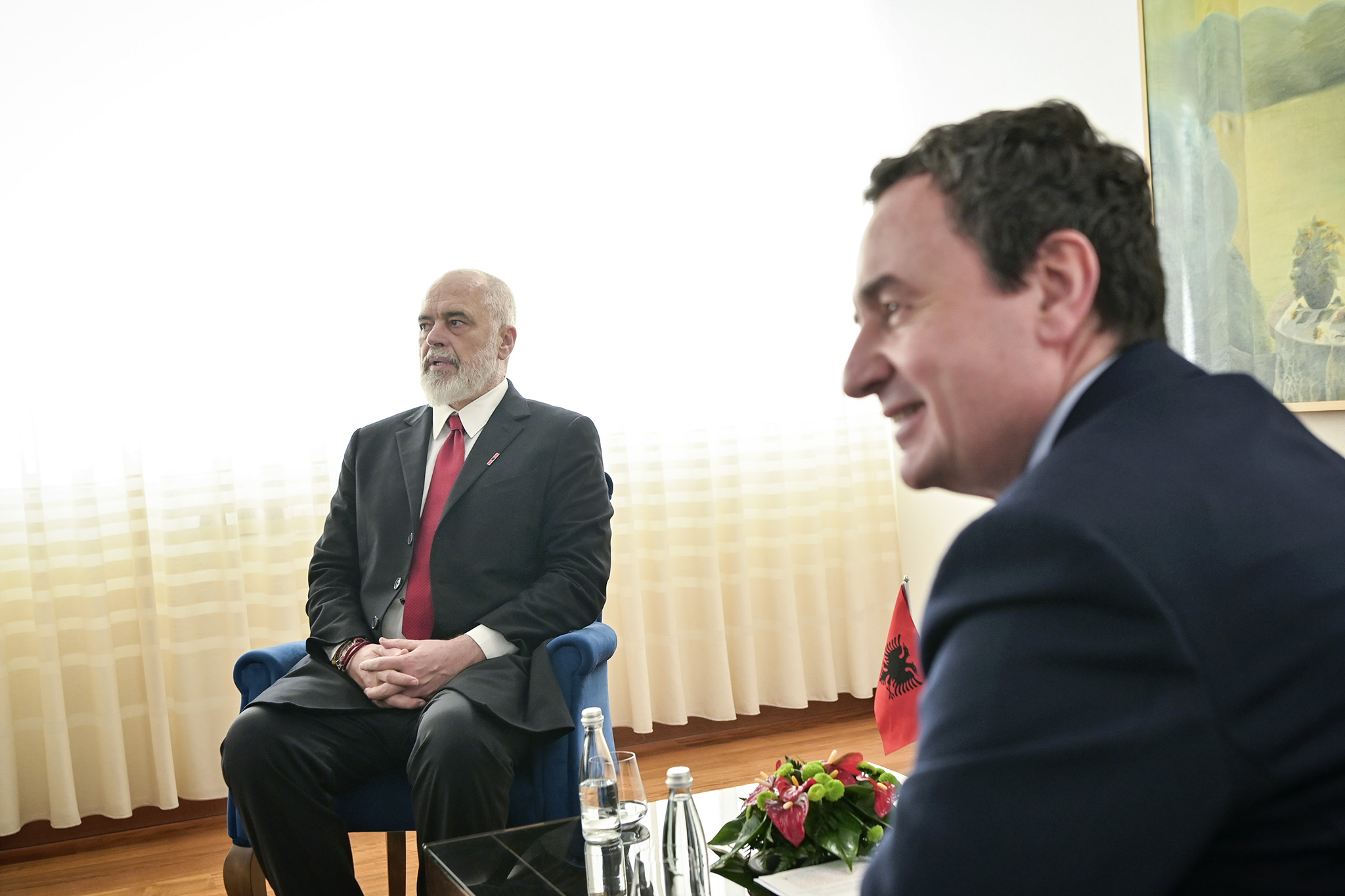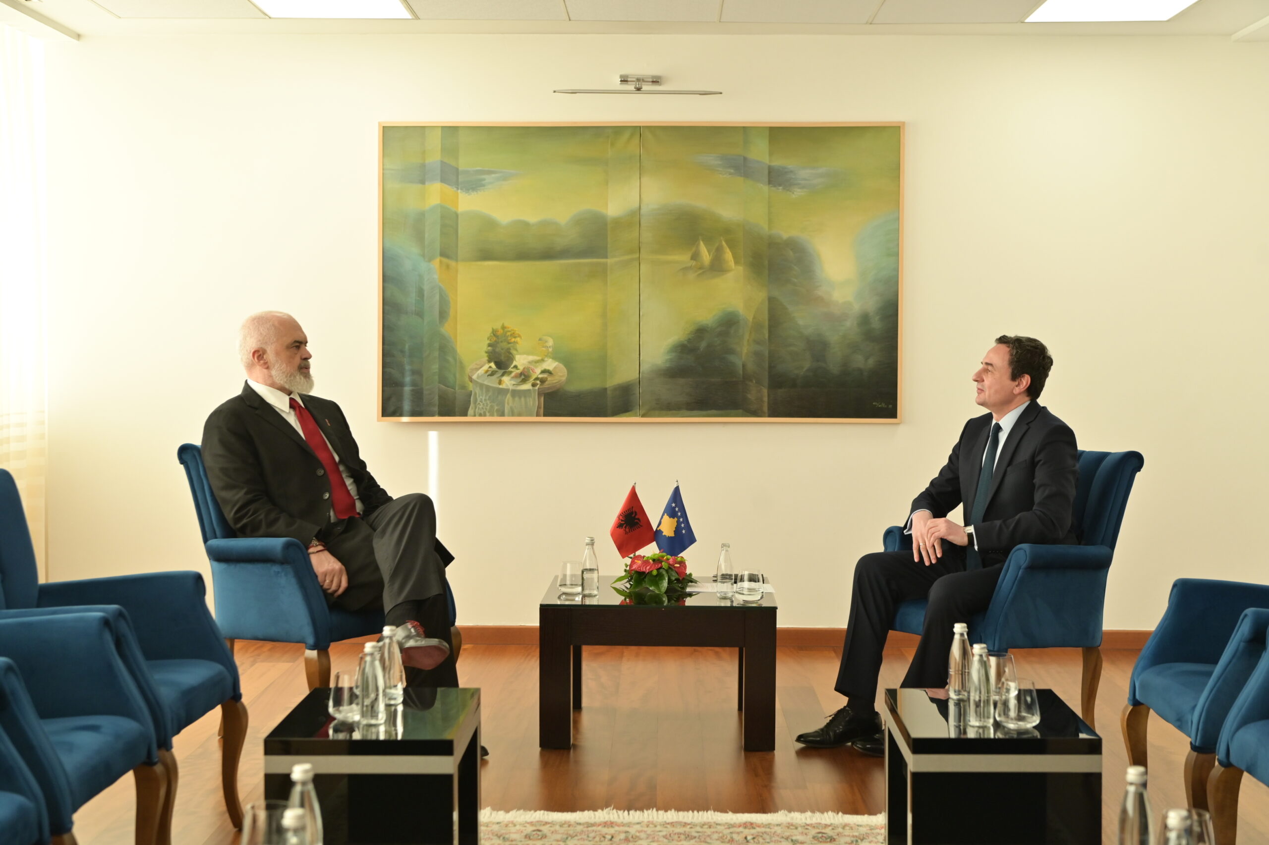 Kryeministri i Republikës së Kosovës, Albin Kurti, me ceremoni zyrtare, mirëpriti për takim bilateral Kryeministrin e Shqipërisë, Edi Rama.