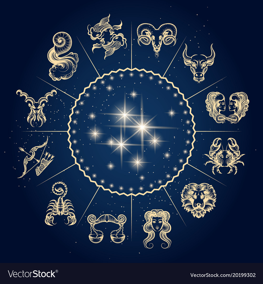 Symbols of zodiac and horoscope circle, astrology and mystic signs. Vector illustration.