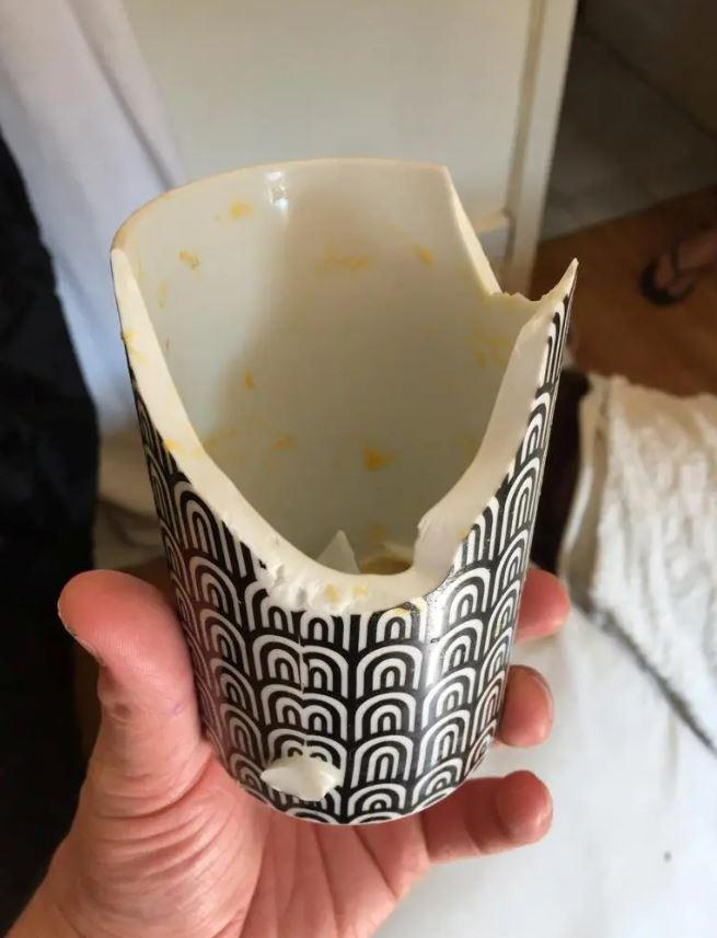 Por pasi e hoqi përzierjen nga mikrovala dhe e preku vezën me një lugë të ftohtë, veza shpërtheu duke i shkaktuar djegie të rënda në fytyrë.