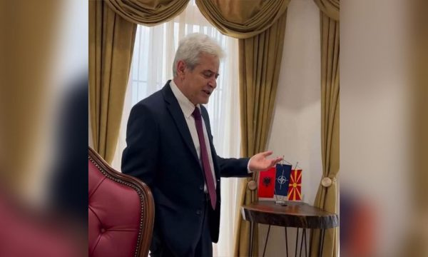 Kreu i BDI’së Ali Ahmeti që është i pasionuar pas këngëve folklorike, është filmuar duke kënduar në zyrat e Bashkimit Demokratik për Integrim.