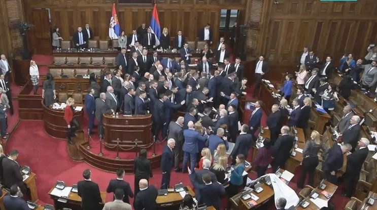 Kuvendi i Serbisë është përfshirë në një kaos derisa disa deputetë të opozitës nga radhët e “Dveri” janë sulur drejt presidentit të Serbisë, Aleksander Vucic.