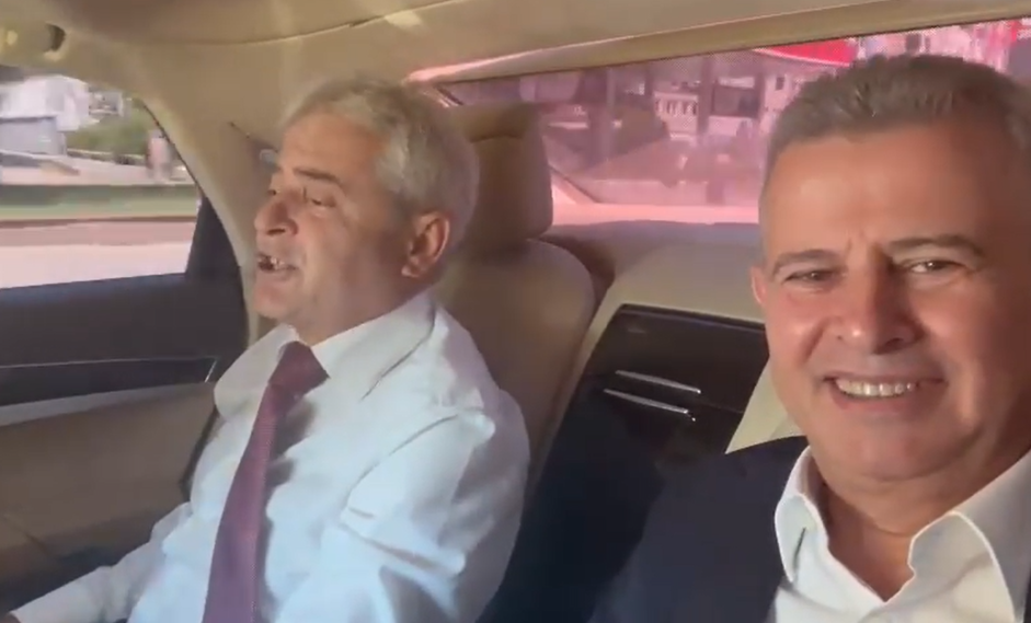 Zëvendësminitri i Punëve të Brendshme Nazim Bushi ka publikuar një video me liderin e BDI-së Ali Ahmetin ku shihet duke festuar në makinë me këngë me sharkia.