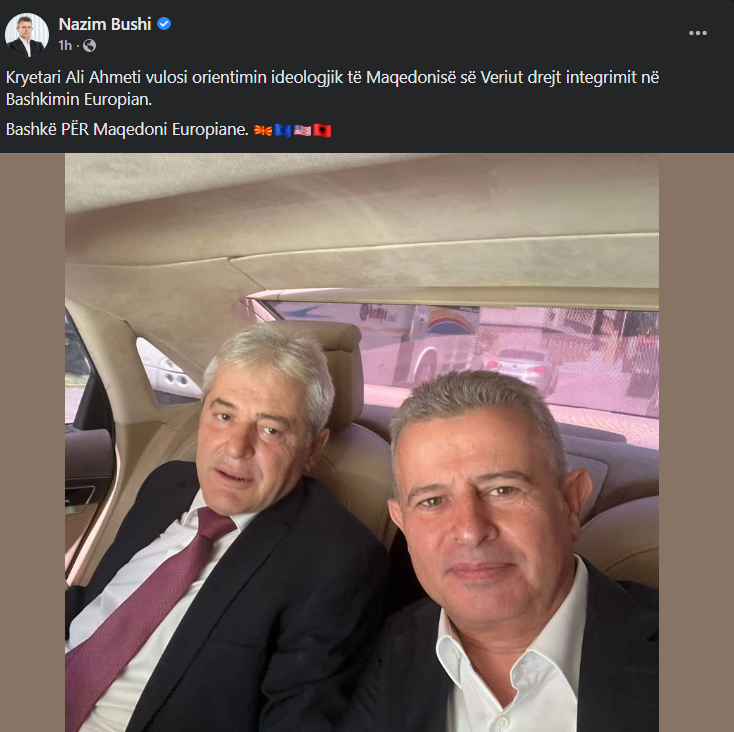 “Kryetari Ali Ahmeti vulosi orientimin ideologjik të Maqedonisë së Veriut drejt integrimit në Bashkimin Europian. Bashkë për Maqedoni Europian”, ka shkruar Bushi.