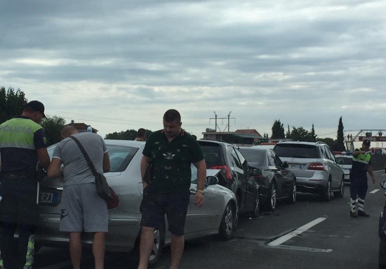 Për shkak të aksidentit, autostrada Tiranë- Durrës është bllokuar për minuta të tëra, ndërsa trafiku është rënduar së tepërmi.