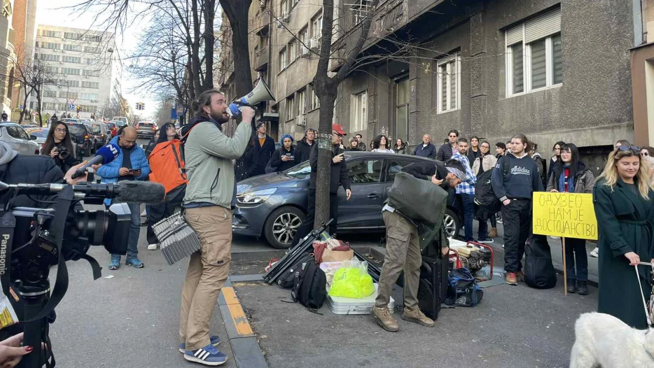 Ata po bllokojnë kryqëzimin e rrugëve Birçaninova dhe Kneza Millosha, në afërsi të ndërtesës së Ministrisë së Administratës Shtetërore dhe Vetëqeverisjes Lokale.