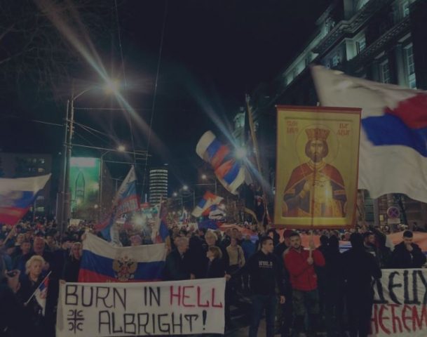 Në 23 vjetorin e ndërhyrjes së NATO’s në Kosovë, serbët në Beograd janë mbledhur kundër ish-sekretares amerikane, Madeleine Albright dhe pro-Rusisë.