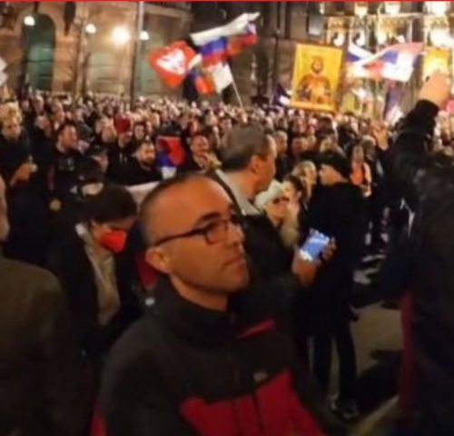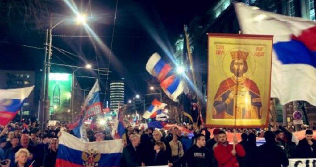 Serbët me flamuj të Rusisë dhe me disa parulla ‘Albright digju në ferr’ dolën për të festuar në rrugët e kryeqytetit serb.