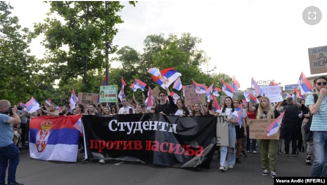 Në protestën e gjashtë “Serbia kundër dhunës”, të premten, dhjetëra mijëra qytetarë në Beograd nisën një marsh drejt Qeverisë së Serbisë, rreth së cilës do të bëhet një unazë.