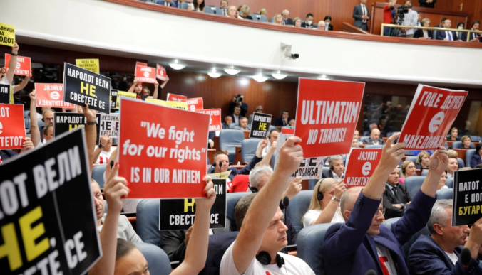 Por, deputetët e VMRO-DPMNE-së vazhdojnë me akuzat ndaj Qeverisë për “tradhti kombëtare” pasi, sipas tyre, “propozimi francez rrënon gjuhën dhe identitetin kombëtare maqedonas”.