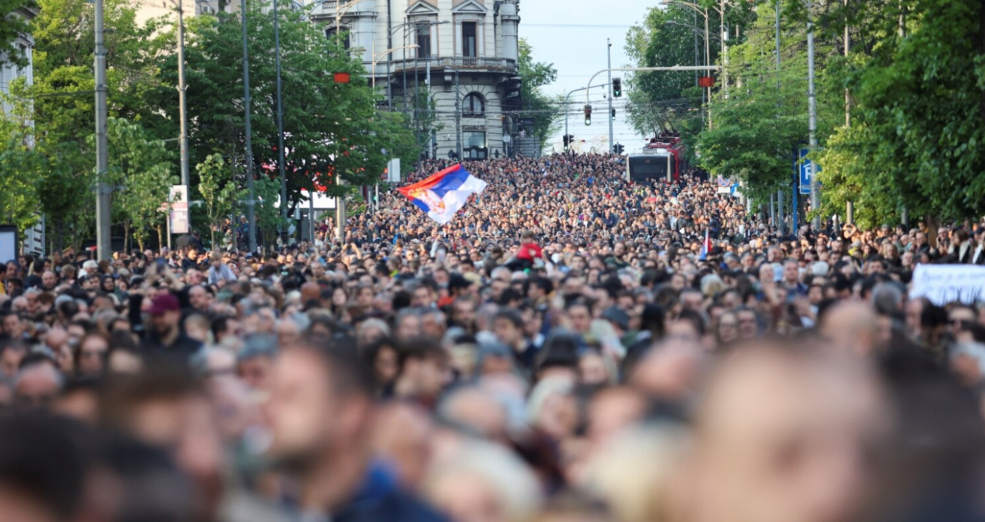 Më shumë se dhjetë mijë demonstrues u mblodhën para parlamentit të Serbisë, para se të dilnin në rrugë për t’u tubuar pranë zyrave të Qeverisë së Serbisë.