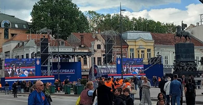 Tubimi në Sheshin e Mbretit Milan në Nish po mbahet megjithëse Komuna e Medijanës në Nish, e vetmja në të cilën SNS-ja nuk është në pushtet, një ditë më parë ka urdhëruar që të hiqet skena, pasi organizatori nuk ka dorëzuar dokumentacionin përkatës për leje.