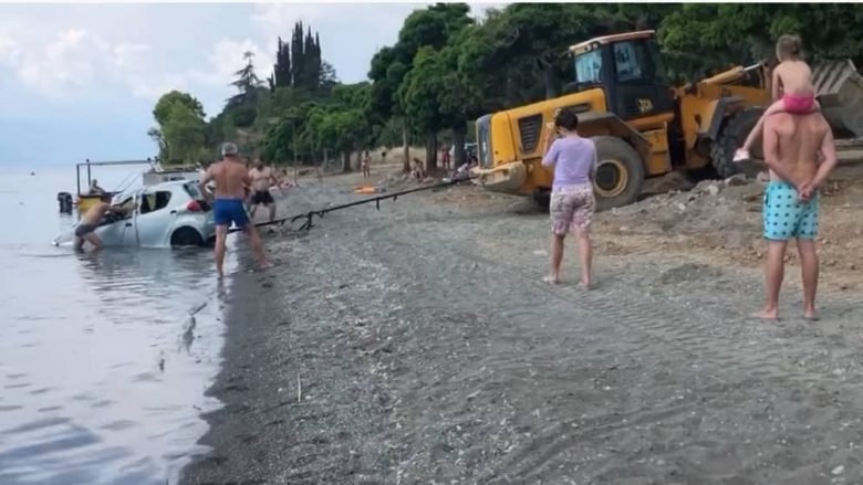 Pushuesit e një pjese në plazhin e Ohrit sot kanë përjetuar një situatë jo të këndshme, pasi një veturë ka përfunduar në ujrat e liqenit duke kaluar shumë pranë tyre.