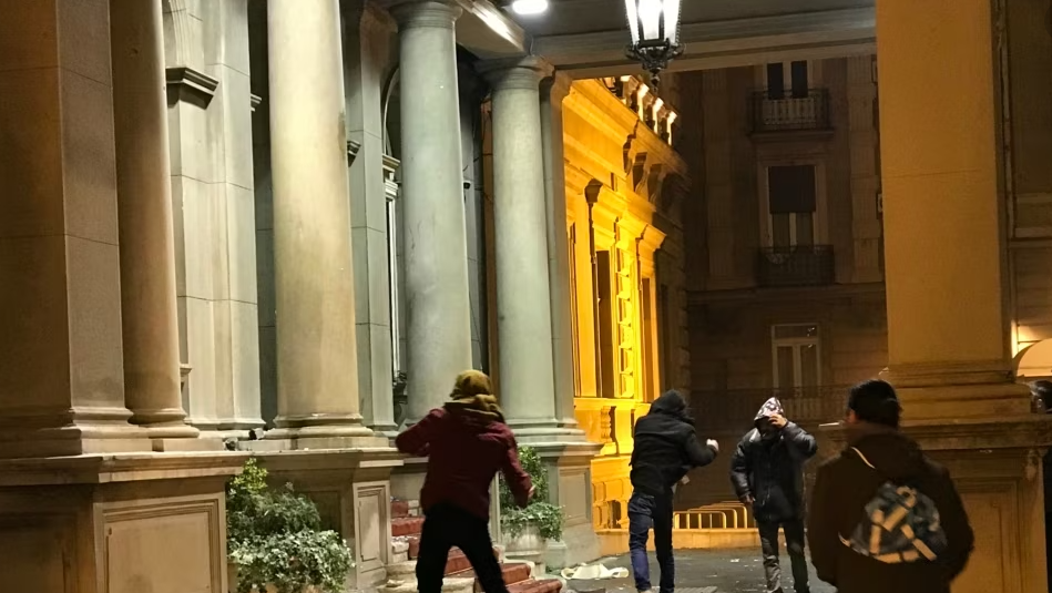 Gjatë protestës, një grup personash të maskuar kanë tentuar të hyjnë në Kuvendin e Beogradit, kanë thyer xhamat dhe dyert, ndërsa policia brenda ndërtesës ka hedhur gaz lotsjellës ndaj tyre.