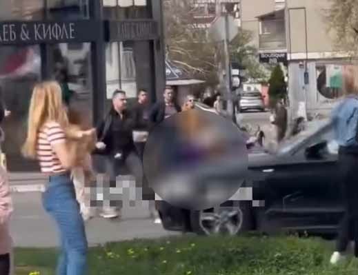 Në disa pamje të publikuara në internet, shihet se si një veturë e godet një grua në Beograd.