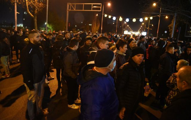 Të grumbulluarit, për 15 minuta, kanë bllokuar qarkullimin në bulevardin “Stanko Dragojeviq” para Ministrisë së Financave dhe Mirëqenies Sociale.