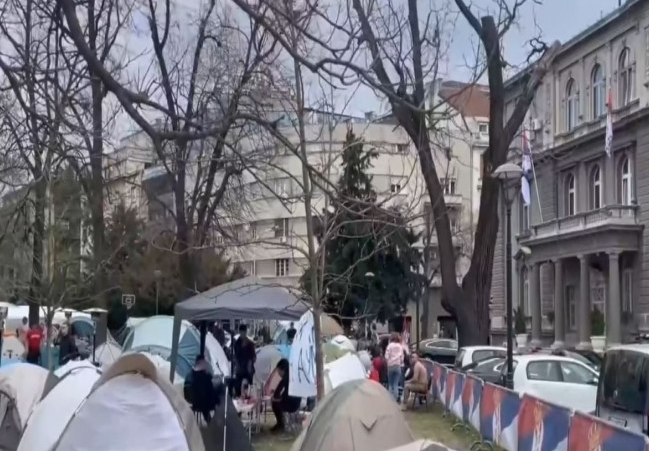 Pranë Presidencës është ngritur një kamp i studentëve të përkrahur nga pushteti. Në Parkun Pionir, me mbështetjen e presidentit Aleksandar Vuçiq dhe simpatizantëve të Partisë Progresive Serbe, janë vendosur tenda dhe tavolina. Ata e quajnë veten “studentë që duan të mësojnë”, duke theksuar se kërkojnë kthimin në fakultete dhe kundërshtojnë protestat studentore që kërkojnë përgjegjësi për tragjedinë në Novi Sad.