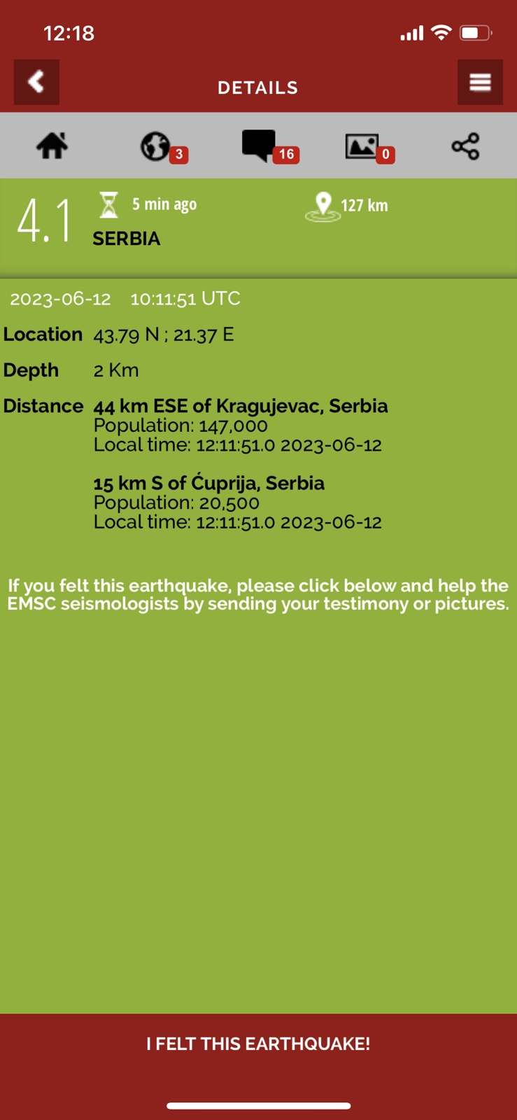 Sipas Qendrës Sizmologjike Evropiane-Mesdhetare, EMSC, thellësia e tërmetit është dy kilometra.