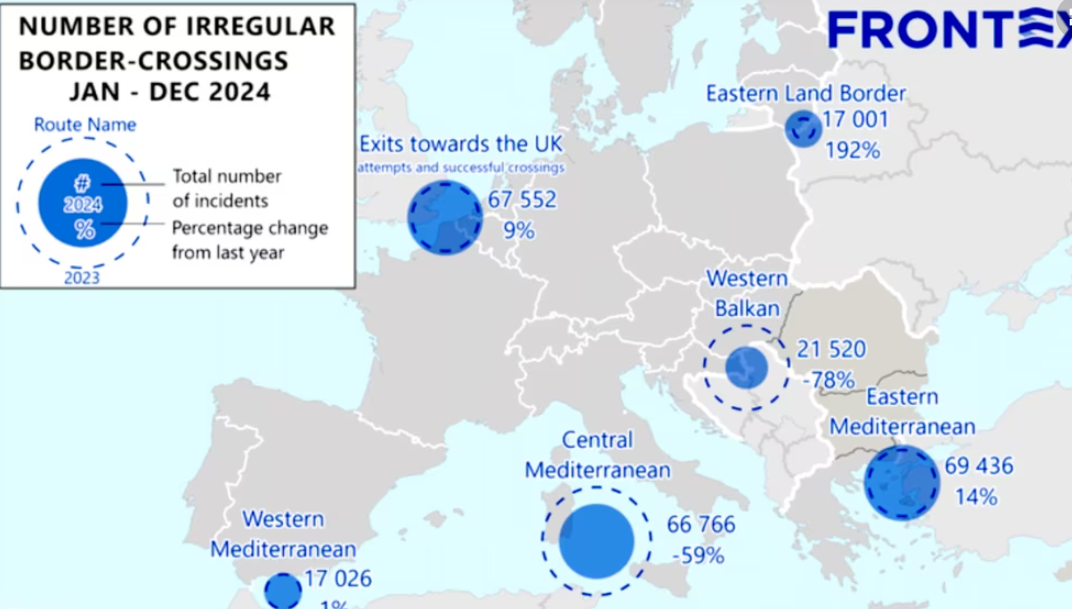 Ndërkohë, sipas të dhënave vjetore të FRONTEX-it pavarësisht presionit të vazhdueshëm të migracionit, bashkëpunimi i vendeve të Bashkimit Europian dhe partnerëve kundër rrjeteve të kontrabandës ka reduktuar me 38% krahasuar me vitin 2023 kalimet e migrantëve të parregullt në kufijtë e jashtëm të Evropës.