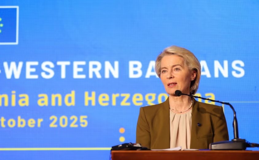 “Sipas një ankete të fundit të opinionit publik, 72 për qind e qytetarëve të Bosnjë e Hercegovinës kanë besim tek Bashkimi Evropian. Brezat e rinj duan të jetojnë në një Evropë të bashkuar, dhe detyra jonë është t’ua bëjmë këtë të mundur”, tha presidentja e Komisionit Evropian, Ursula von der Leyen.