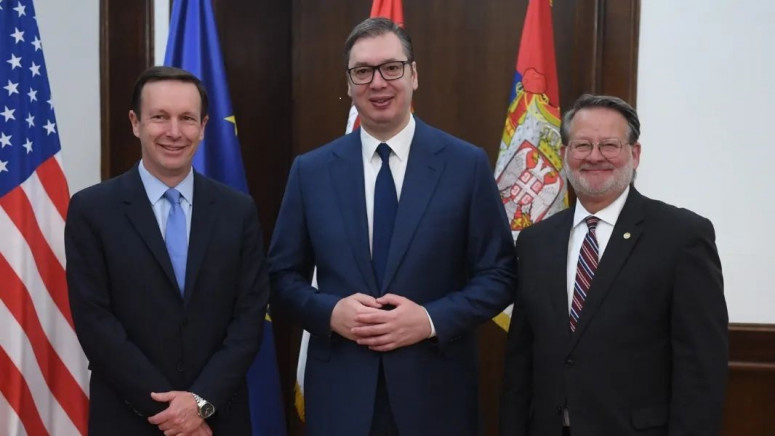 Presidenti i Serbisë Aleksandar Vuçiq ka thënë se ka zhvilluar “një bisedë të hapur” me senatorët amerikanë Chris Murphy dhe Gary Peters në Beograd më 25 maj.