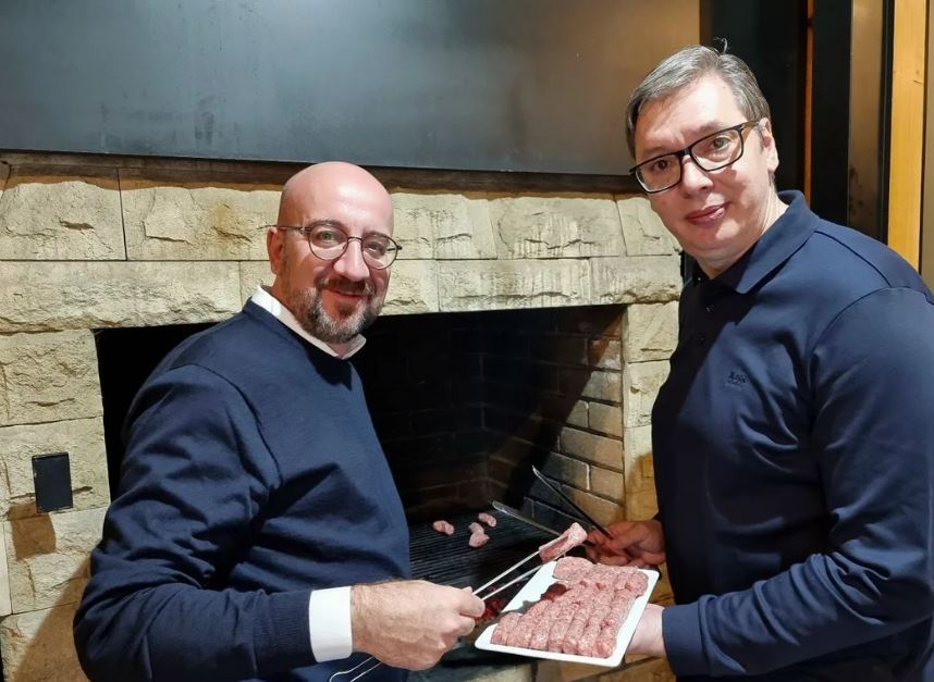 Presidenti i Këshilli Evropian, Charles Michel, është takuar me presidentin serb, Aleksandër Vuçiq, me të cilin kanë përgatitur qebapë për darkë.