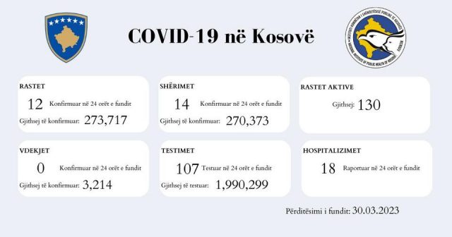 Aktualisht janë 130 raste aktive me COVID-19, thuhet në njoftimin e IKShPKS-së