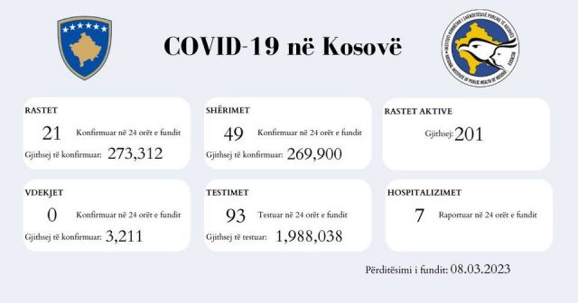Sipas tyre janë kryer 93 testime, janë shëruar 49 persona si dhe të hospitalizuar vazhdojnë të jenë shtatë persona./Arbresh.info