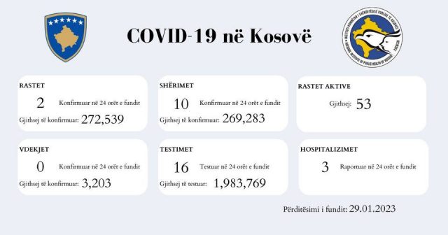 Instituti Kombëtarë i Shëndetit Publik ka njoftuar se gjatë 24 orëve të fundit janë konfirmuar dy raste të reja me COVID-19.