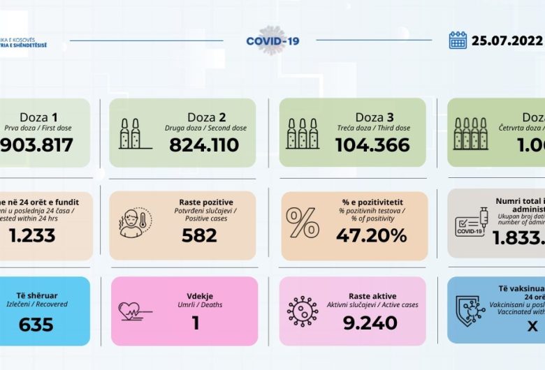 Një i vdekur dhe 582 raste të reja me koronavirus