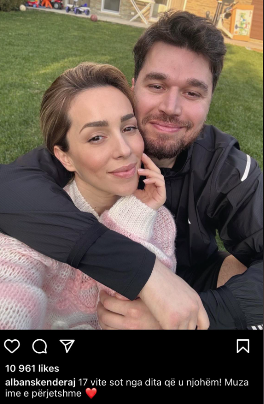 “17 vite sot nga dita që u njohëm! Muza ime e përjetshme”, ka shkuar Albani poshtë fotografisë.