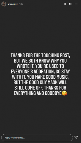 Megjithatë kjo nuk ka përfunduar me kaq, modelja sërish në një postim në llogarinë e saj zyrtare të Instagramit ka vazhduar me mesazhe drejtuar reperit nga Drenica.