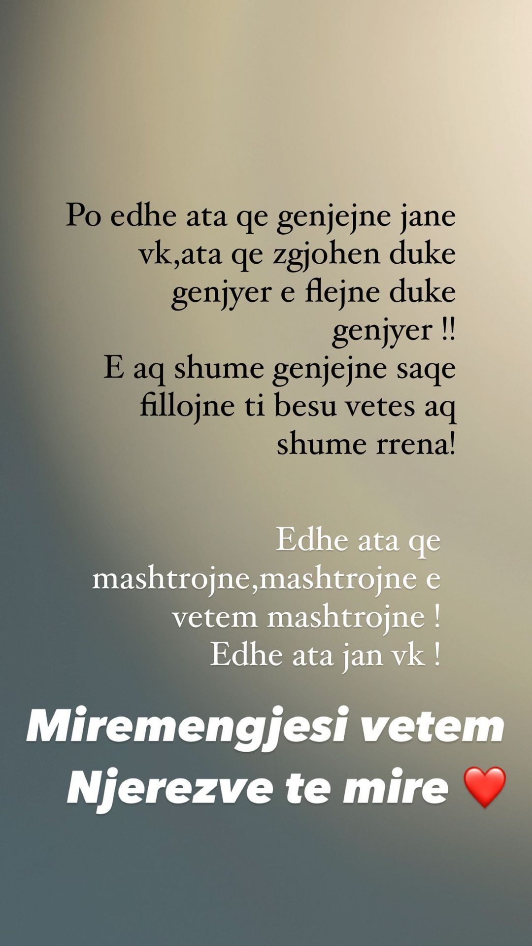 Ai publikuar disa të fundit në InstaStory, ku thotë se i urren njerëzit që janë dinak.