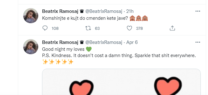 Pas kësaj, një ndjekëse në Twitter krahas postimit të artistes tha që “Ndjej sikur nuk e bullizuam këtë vajzë mjaftueshëm”
