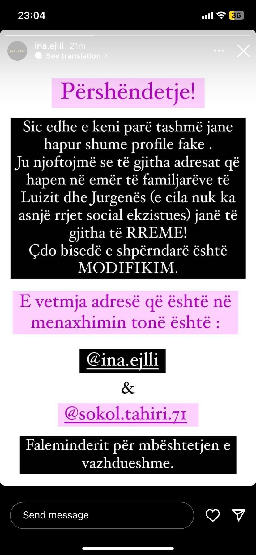 Tashmë kjo llogari numëron 642 mijë ndjekës, por së fundmi nga emri Luiz Ejlli u ndryshua duke u kthyer në atë të motrës së tij, Ina Ejlli.