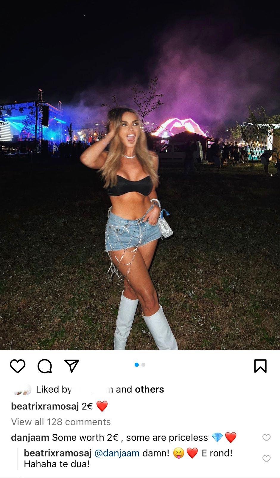 Por, menjëherë pas kësaj fotografi erdhi reagimi i këgnëtares kosovare, Beatrix Ramosaj e cila shkroi në përshkrim të fotografisë: “2 Euro”.